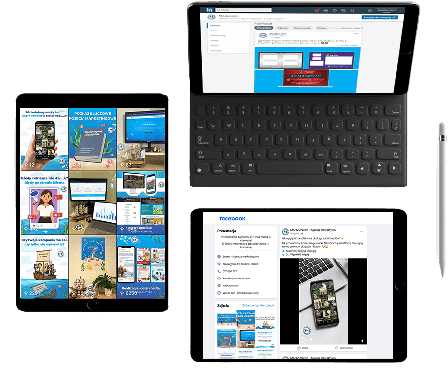 Działamy w branży od 2016 roku, a od 2018 rozwijamy agencję Matezun. Przez ten czas zrealizowaliśmy setki projektów dla firm z różnych branż – od lokalnych biznesów po ogólnopolskie marki. Pracujemy na terenie Krakowa, ale współpracujemy też z Klientami z pozostałych regionów Polski, a czasem nawet z całego świata.